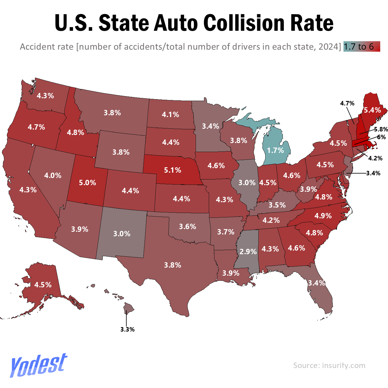 Even with much advocacy from policymakers to push for improvements and safety measures, the protest for the better part remains unheard. According to recent data in 2025, the U.S. estimated over 37,000 road fatalities, and most accidents point to impaired driving and infrastructure issues as the primary reasons. Populous states like California, Texas and Florida spearhead the numbers with recorded deaths of 3800, 3700 and 2900, respectively. But accident rates tell a different story: Collision data shows states like Massachusetts (6.07%), New Hampshire (5.81%) and Rhode Island (5.63%) ranking among the highest for crashes per licensed driver, At the other end of the spectrum, states such as Michigan report markedly lower rates, closer to 1.68%, underscoring how risk isn’t evenly distributed across the country.